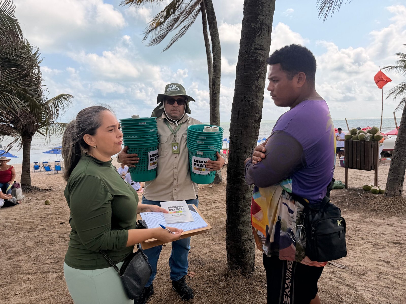 O Governo da Paraíba, por meio da Secretaria de Estado do Meio Ambiente e Sustentabilidade (Semas), realizou, nesta quinta-feira (29), na Praia do Bessa, a entrega de lixeiras, porta-bitucas padronizados e da cartilha “Minha Praia – Da Minha Praia eu cuido” a comerciantes e ambulantes que atuam na orla de João Pessoa. A ação marca o início da segunda etapa do projeto Minha Praia.