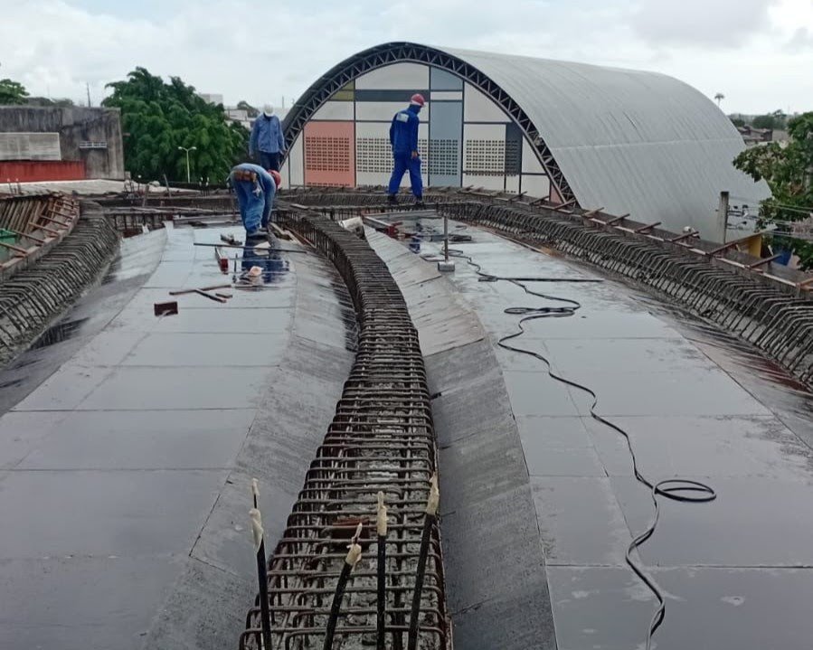 Quem passa pela BR-101 já percebe a mudança na paisagem. Atualmente, as equipes trabalham intensamente na montagem de armadura, forma e concretagem da estrutura de travessia da BR-101 no sentido Recife – João Pessoa, terraplenagem das alças de acesso e aplicação de concreto asfáltico usinado à quente (CAUQ) nas vias de circulação internas do Bairro Costa e Silva.